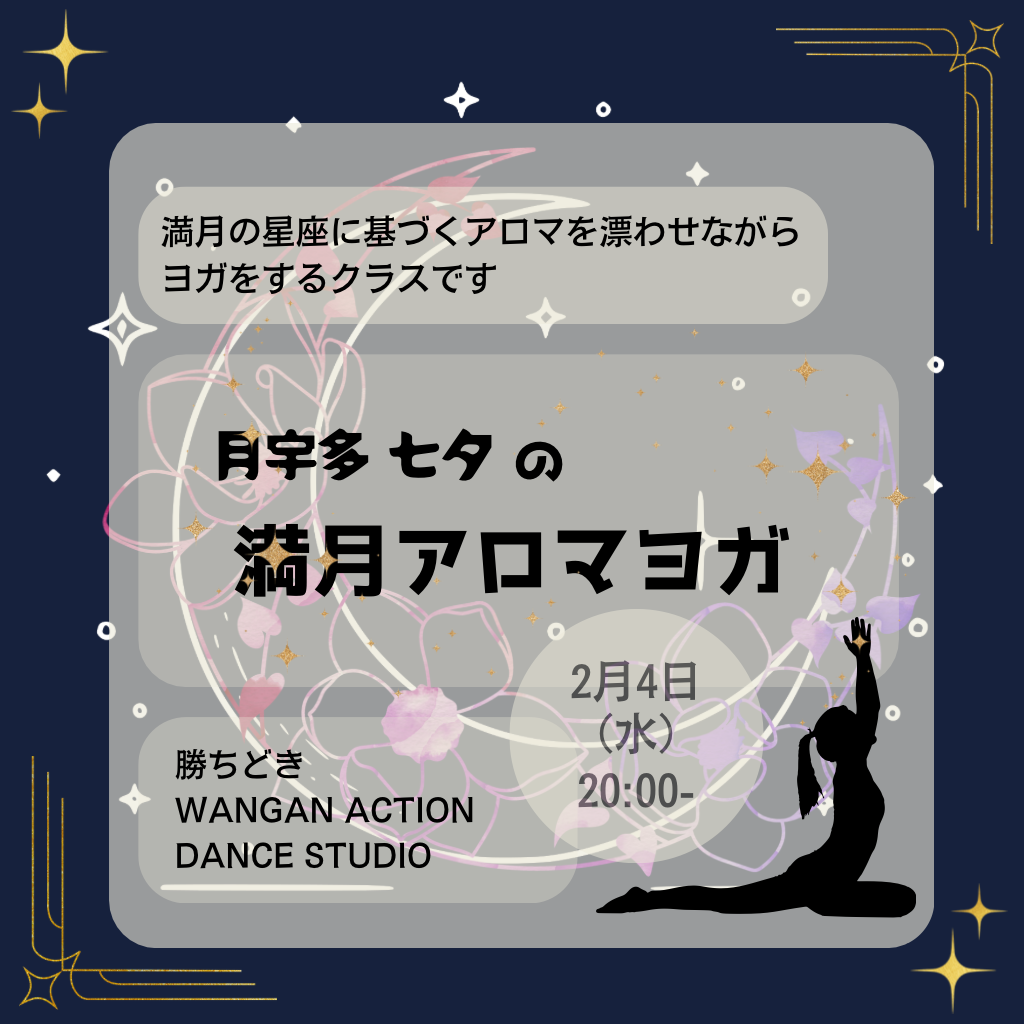 | イベント名 | : | 月宇多七夕の満月アロマヨガ 〜牡牛座満月〜 |
