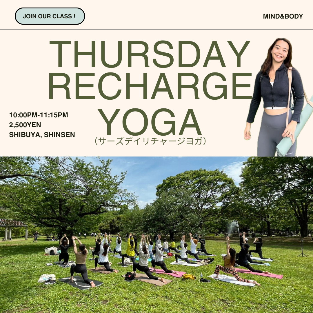 | 実施内容 | : | 週半ばの木曜日、ヨガでエネルギーをチャージして、パワフルに週末まで乗り切ろう!疲れを感じている時でも、ヨガで自分の心と体にフォーカスすると、クラスが終わる頃にはスッキリとしてきます♪疲労回復を目指したクラスを実施します。 ■開催日時 ■レッスン内容 ・3月6日(木)[Mind Glow] ■スケジュール ■開催場所 ■料金 ■持ち物 ■キャンセルポリシー |