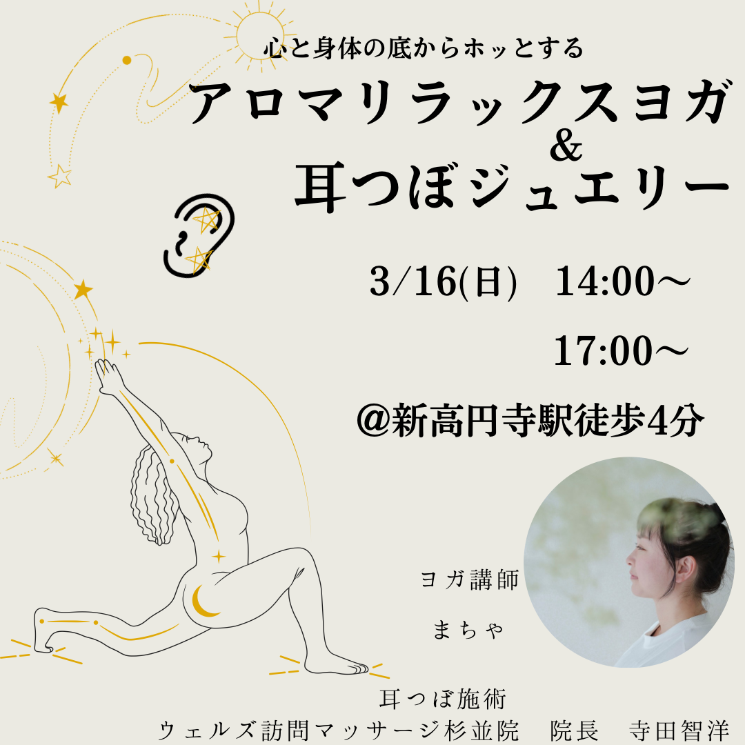 | イベント名 | : | アロマリラックスヨガと耳つぼジュエリー |