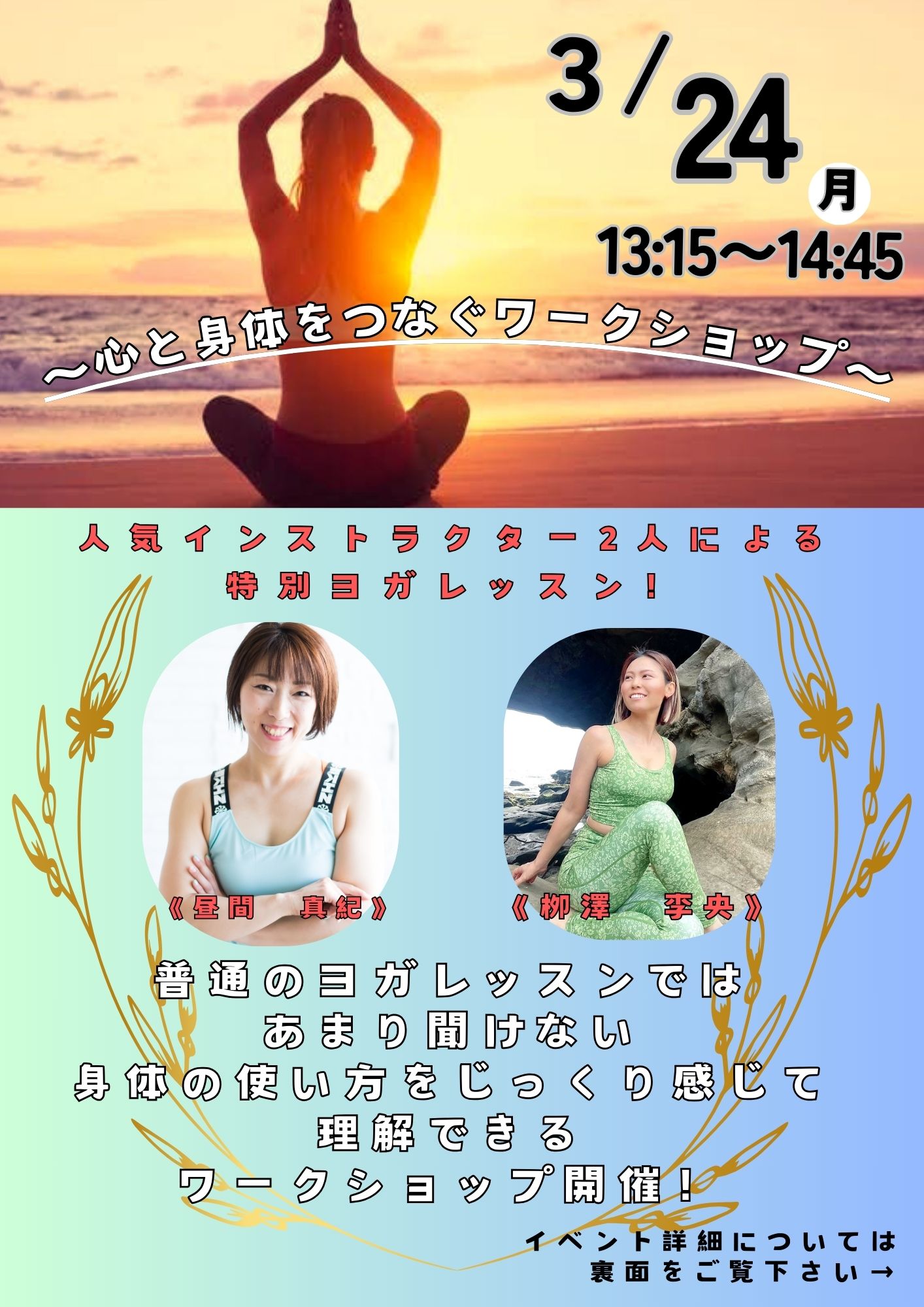 | イベント名 | : | 心と身体を繋ぐワークショップ |