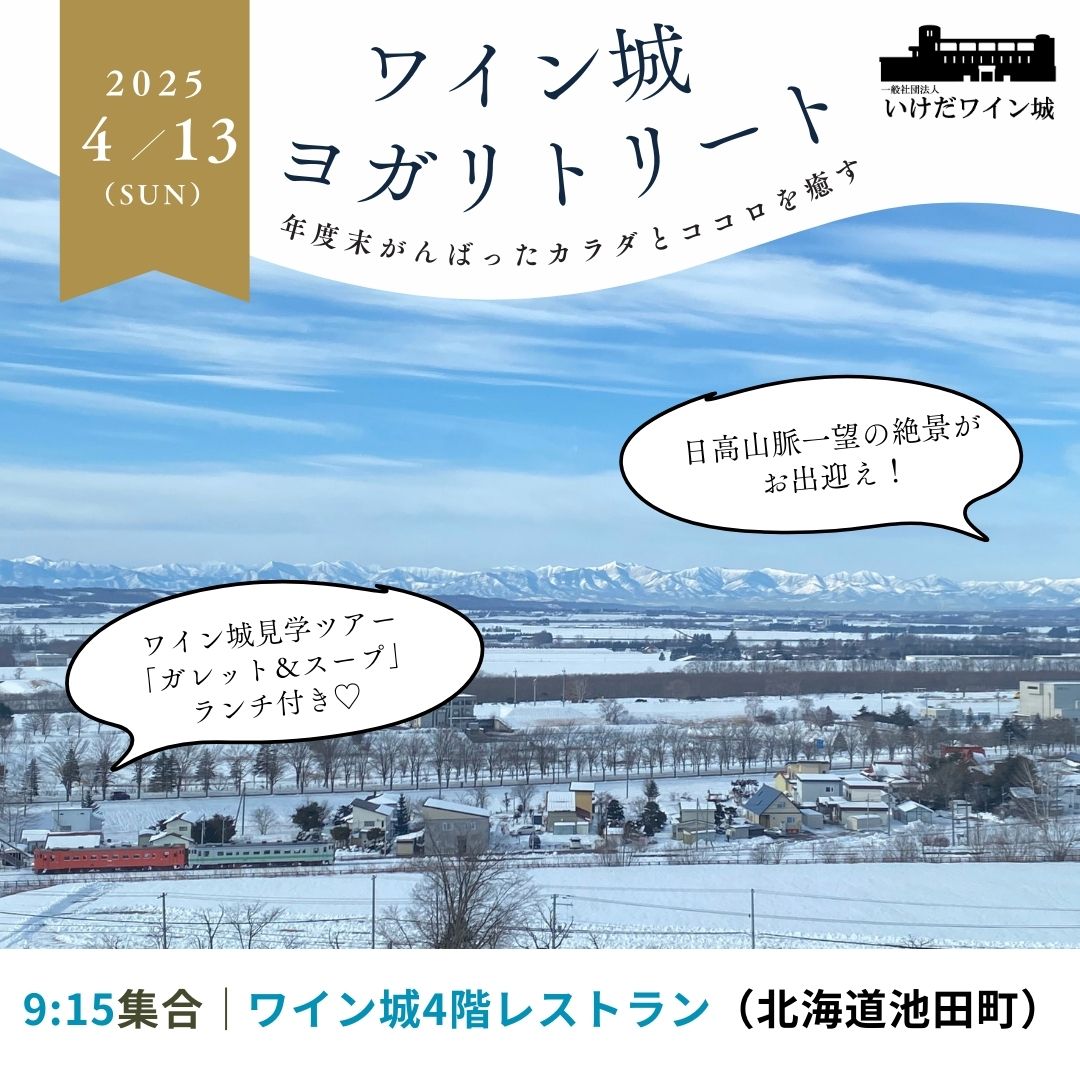 | 実施内容 | : | 4/13(日)年度末からがんばっていたカラダとココロを癒す ✔︎気づいたらいつも自分のことを後まわし そんなあなたに必要なのは ↓↓↓ ✔︎いけだワイン城4階のレストラン(屋内)からの カラダとココロをリフレッシュしに |