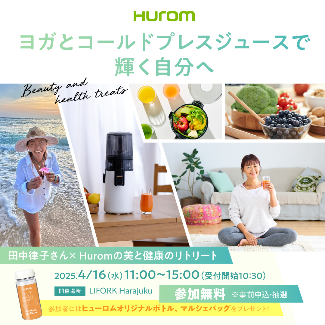 | イベント名 | : | ヨガとコールドプレスジュースで輝く自分へ!~田中律子さん × Huromの美と健康のリトリート~ |