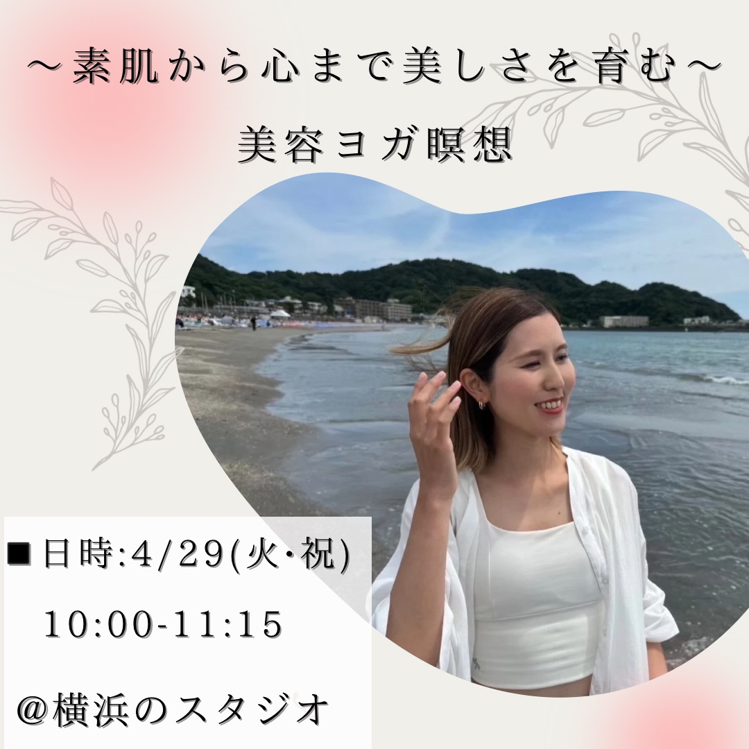 | 実施内容 | : | アロマの香りで呼吸を巡らせて、心をやわらげ内側からあふれる美しさを開花させていきます。 美容といえば、スキンケア、メイク、エステなど外側を思い浮かぶ方も多いと思います。 でも実は、お肌と心の繋がりはとても深いもので、外側からのスキンケアだけを頑張っても、変えられない部分や満たされない心の部分があったり。 一度はお肌のトラブルで悩んだことのある方が多いのではないでしょうか? 美容ヨガ瞑想では、血流を良くすること、内面を整えていくことで、その美しさは外側まで広がっていき、結果的にお肌のトーンアップやツヤ、うるおい、表情の変化に少しずつ現れていきます♪ 内側と外側から、両方の美しさが叶っちゃうって嬉しいですよね。習慣になると、物事の考え方、捉え方にも変化が見られてきます。 内面の美しさは、特別なことをするよりも、日々の積み重ね で磨かれていきますよ。 そしてなんと、イベントに参加してくださった方に感謝の気持ちを込めて、1時間のオンラインマンツーマン体験レッスンを割引させて頂きます。 ◾️日時: 4/29(火) 10:00-11:15 イベント後、お時間ある方はカフェでランチを ◾️場所:横浜駅徒歩5分のレンタルスペース ◾️定員:4名 ※女性限定 ◾️参加費:3000円 お会いできる皆様、楽しみにしております♡ |