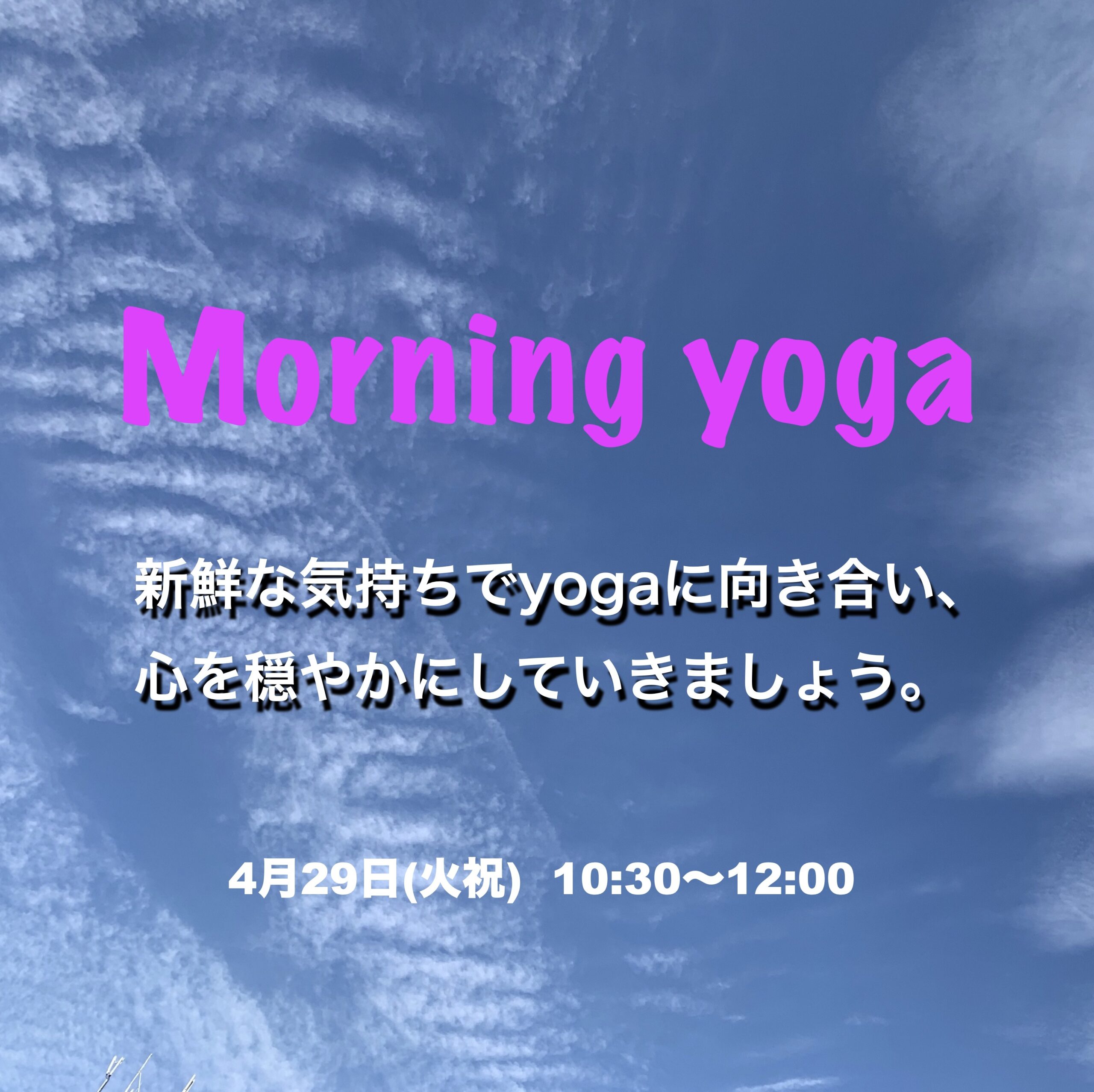 | 実施内容 | : | 【morning yoga】 【持ち物】 【連絡事項】 |