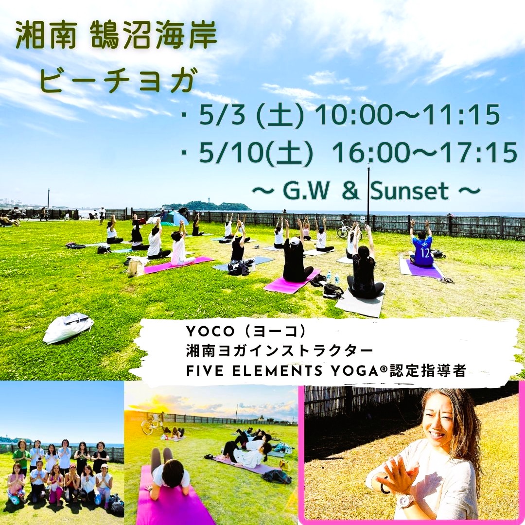 | 実施内容 | : | ご覧いただき、ありがとうございます! いよいよ新緑の季節到来!湘南の海岸線もポカポカです♪ 【日程】 【集合】 【参加費】 【持ち物】 ※雨天強風中止 ※その他、詳細はお気軽にお問い合わせください♡ ゆっくりと丁寧に時間を使っていくのでヨガ未経験でも安心してどうぞ。もちろんヨガに慣れてる方もいつもと違う感覚を味わって頂けます! |