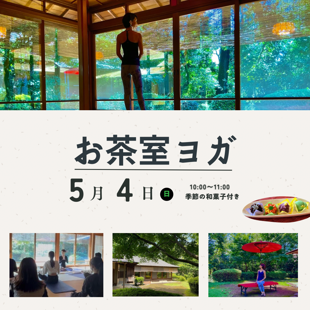 | イベント名 | : | 新緑のお茶室ヨガ【季節の和菓子付】 |