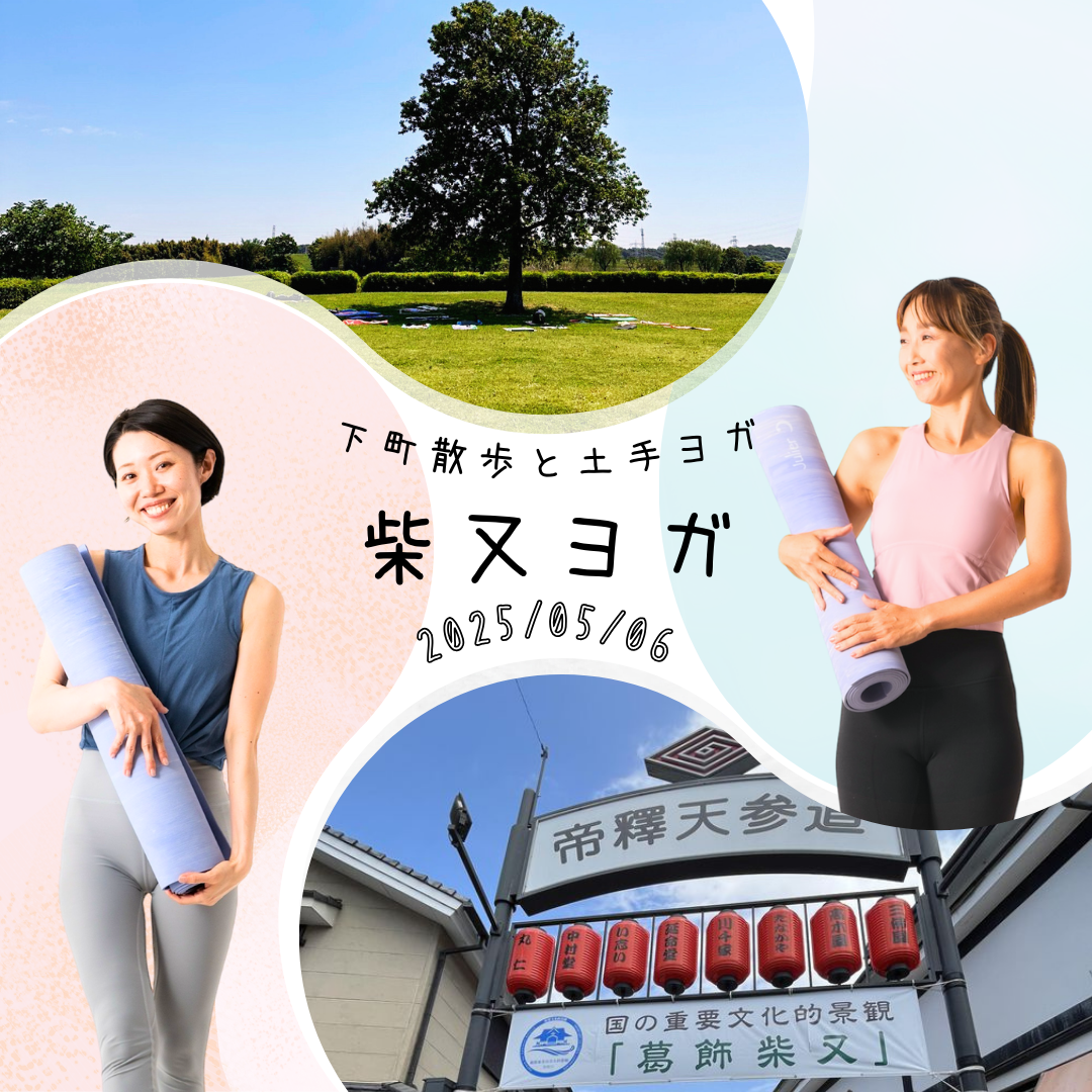 | 実施内容 | : | 柴又お散歩&土手ヨガ 坂田直美×マッキー コラボ企画 自然の中に身を置いて、自身の内側と向き合い気持ちの良い時間を ●日時 5月6日(金.振替休日)9:00~ ●タイムスケジュール 9:00柴又駅集合 時間厳守 9:15~移動 10:00~11:00 青空土手ヨガ 11:00~お弁当タイム 12:30頃~柴又帝釈天、参道散策 ●参加費 大人¥4000(お弁当付き) 《早割¥3500(お弁当付き》 小人¥ 500(お子様は当日現金払い、お弁当はつきませんので、ご持参 ■ご協賛 私の完全美容食 国産大豆の黒糖フレーバープロテイン1包 TAEKO skincare 使い切り日焼け止め3包 ◆こんな方にオススメ 身体を動かして汗をかきたい 陽の光を浴びながら大地と繋がりたい 木々のエネルギーを感じたい 心も身体も解放したい 1日を笑顔で過ごしたい 初心者の方も、安心してクラスにご参加ください 胸を開いて大きく呼吸し、太陽、緑、大地、風を存分に味わいまし 参加者の皆様にとって、素敵なヨガタイムとなりますように ヨガ講師 坂田直美・マッキー |