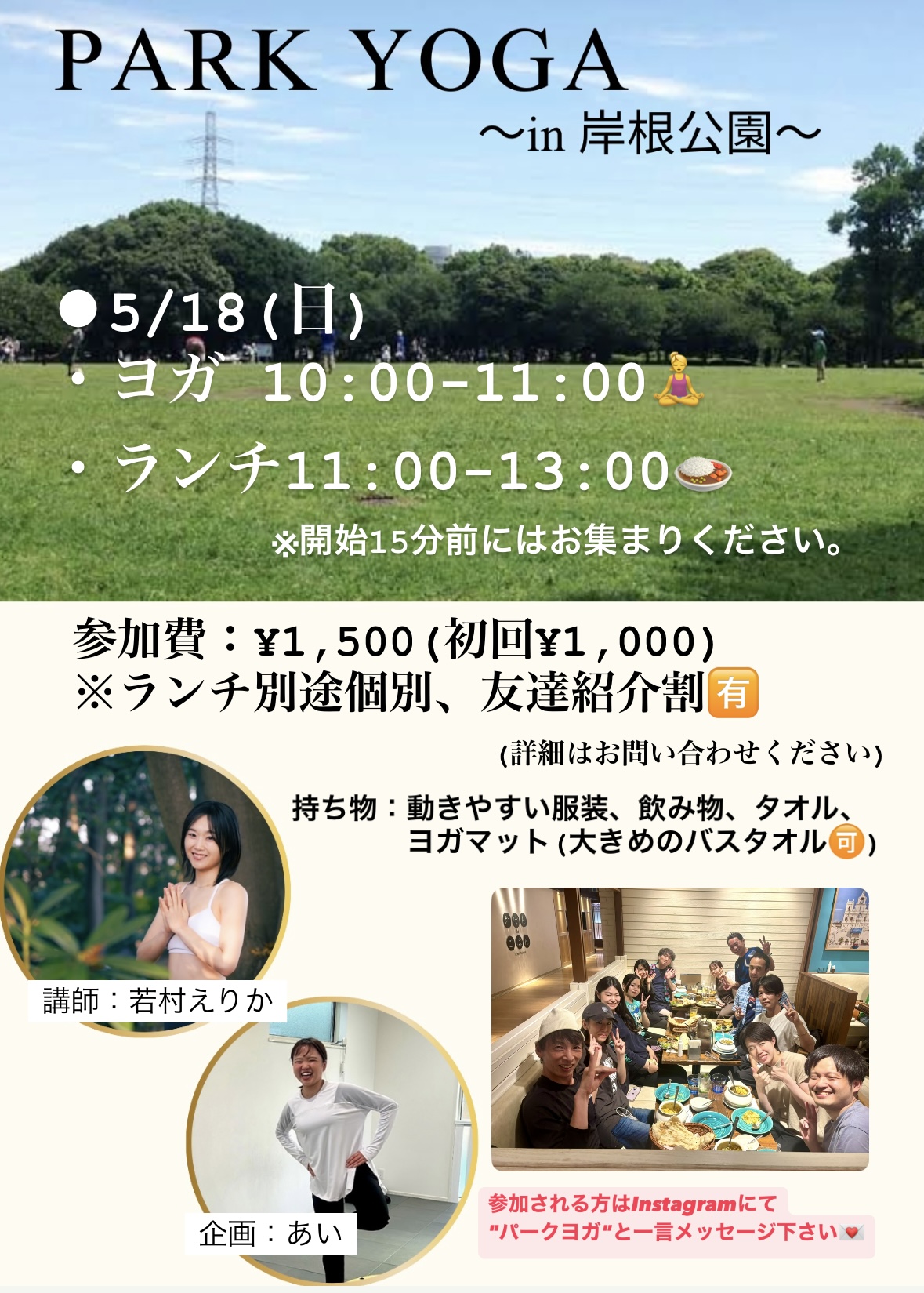 | 申込方法 | : | Instagramより”パークヨガ参加”とDMください。 https://www.instagram.com/ai_story81?igsh=Ymh0eTZyOW9oZG1l&utm_source=qr |