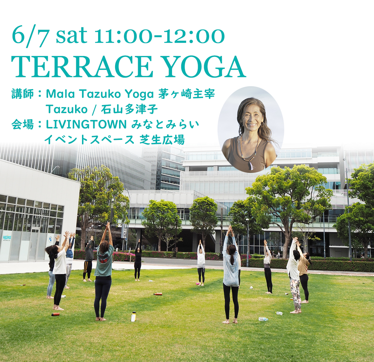 | 実施内容 | : | みなとみらいの空の下、やわらかな天然芝の上で、自然を感じながら心と体を解き放つウェルネスな時間を過ごしませんか? ■開催日時:2025年6月7日(土)11:00-12:00 |