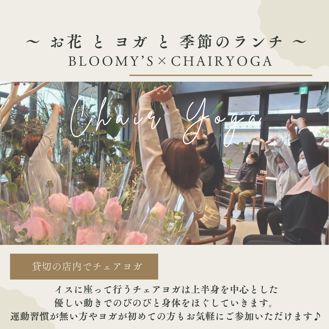 | イベント名 | : | ~お花とヨガと季節のランチ~フラワーカフェBLOOMY'S×チェアヨガイベント |