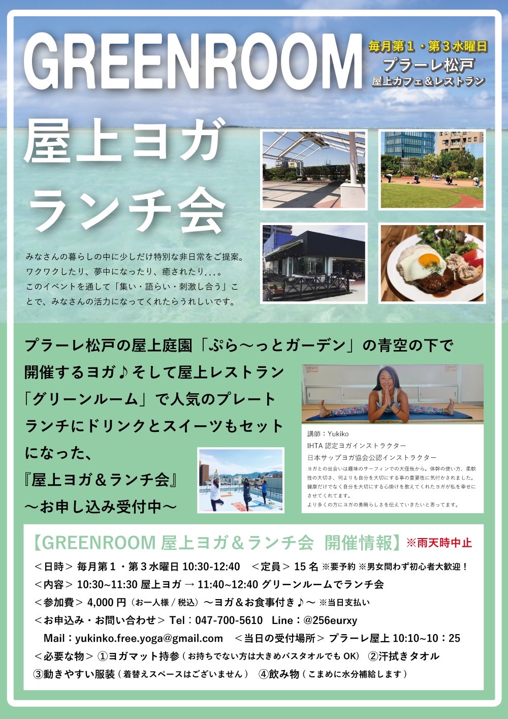 | イベント名 | : | プラーレ松戸屋上ヨガ&選べるランチプレート付き |