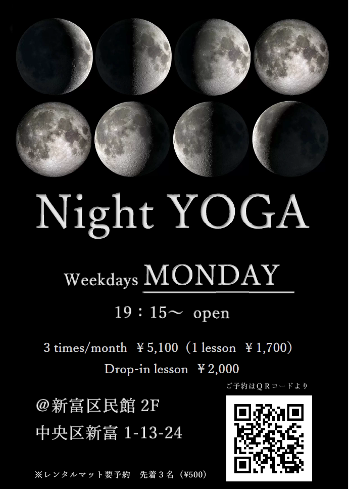 | 難度 | : | ★~★★★ 週を重ねるごとに、レベルが上がります 第1回 月曜夜活【初級者向け(60分)】 ヨガが初めての方、体力に自信がない方、シニアの方も安心して参加できる 第2回 月曜夜活【初・中級者向け(75分)】 中級レベルのポーズ(アーサナ)も取り入れます 第3回 月曜夜活【中・上級者向け(90分)】 中級から上級レベルのポーズに挑戦します |