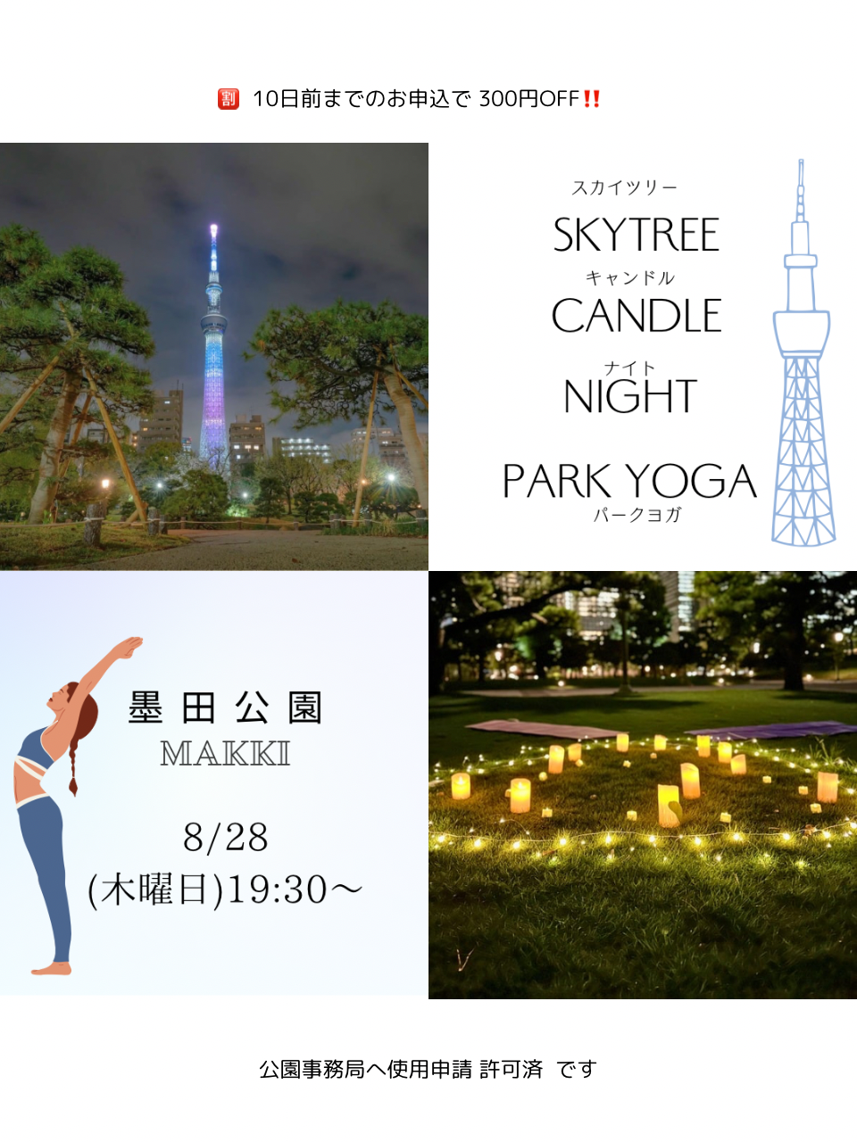 | イベント名 | : | スカイツリーキャンドルナイトパークヨガ・墨田公園 |