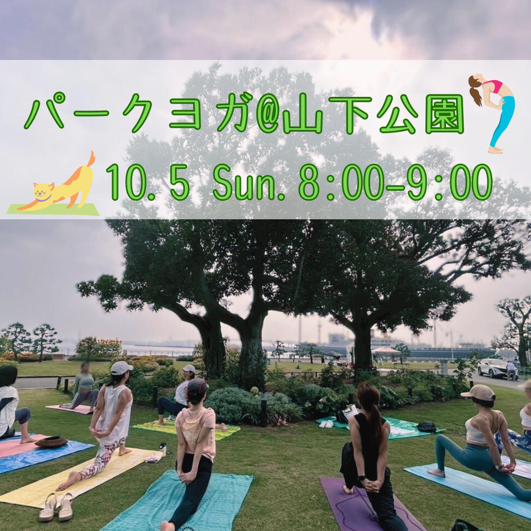※雨天の場合はスタジオにて開催いたします。ぜひご参加ください ●参加費:1.000円 ●持ち物:ヨガマット、飲み物(水など)、小タオル ●雨天の場合は元町「インヘールヨガスタジオ」にて開催します。 |