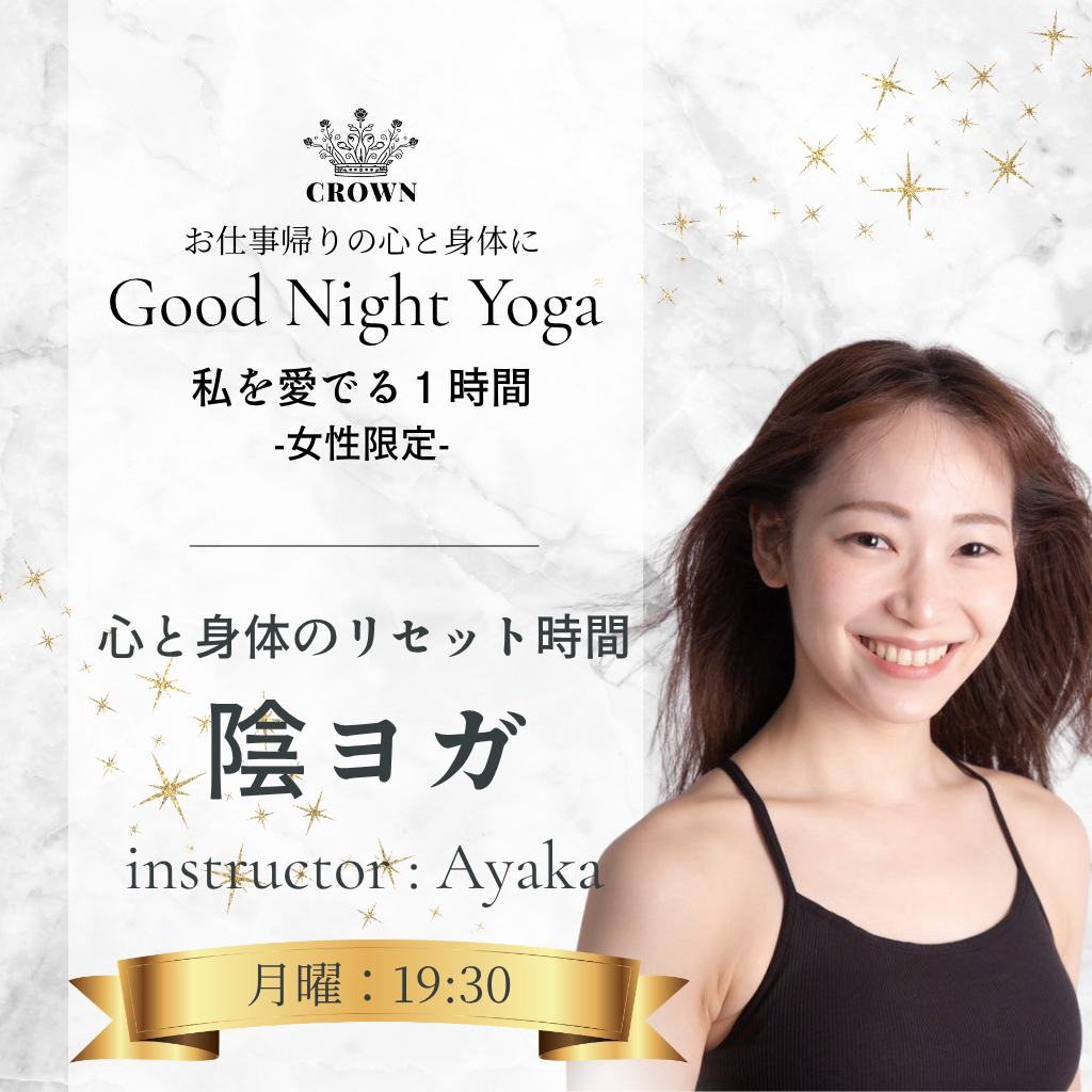 | 実施内容 | : | 私が担当させていただく陰ヨガではその日に参加してくださった方の好みや体調に合わせてアロマを使いながら無理のないポーズを1つ1つ丁寧に行っていきます。 ✦••┈┈┈┈┈┈┈┈┈┈✦ コンセプト Pilates salon CROWNが贈る「Good Night Yoga」は、 リストラティブヨガや陰ヨガ、ボールやローラーを使ったリリースを取り入れ、 最後は、温かいハーブティーを飲みながら余韻を味わう。