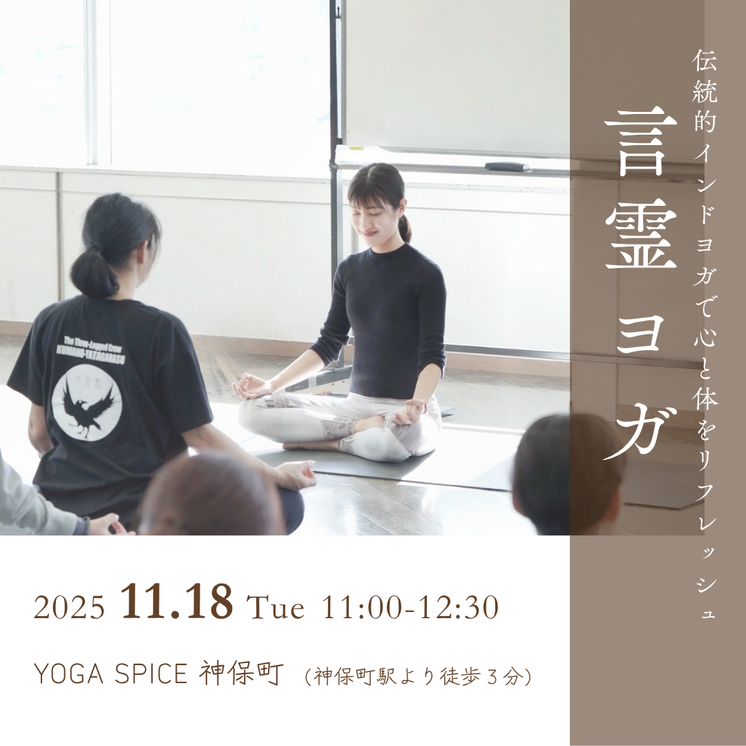 | 実施内容 | : | 伝統的古典インドヨーガをベースに 約5000年以上前に起源をもつ古代インドの叡智をもとに、 アーサナ(ポーズ)では全身を大きくゆったりと動かし、 初心者の方から経験者の方まで、どなたでも安心してご参加いただけます。 ※このクラスは言霊ヨガの考案者、黒戌仁先生から直接伝授していただきました。 <持ち物> |