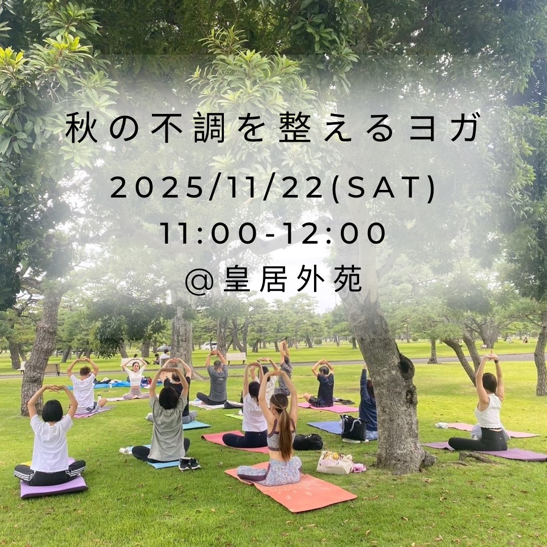 | 実施内容 | : | 秋は呼吸が浅くなったり、冷えや腸の働きが弱くなる季節。 今回のテーマは「内蔵を温める」こと。 骨盤や股関節まわりの筋肉を動かし、 枯葉が混じる芝生に身を委ね、 2人の講師がリレー形式で行います。 ▽日時:11月22日(土) 11:00-12:00 ▽場所:皇居外苑 ▽定員:15名 ▽参加費:2,000円(プチお菓子付き) 当日、現金もしくはPayPayでお支払いください。 ▽持ち物 ▽こんな方にオススメ! 難しいポーズはやらないので身体がかたくても大丈夫です。 それでは、当日みなさんとヨガができることを楽しみにしております♪ |