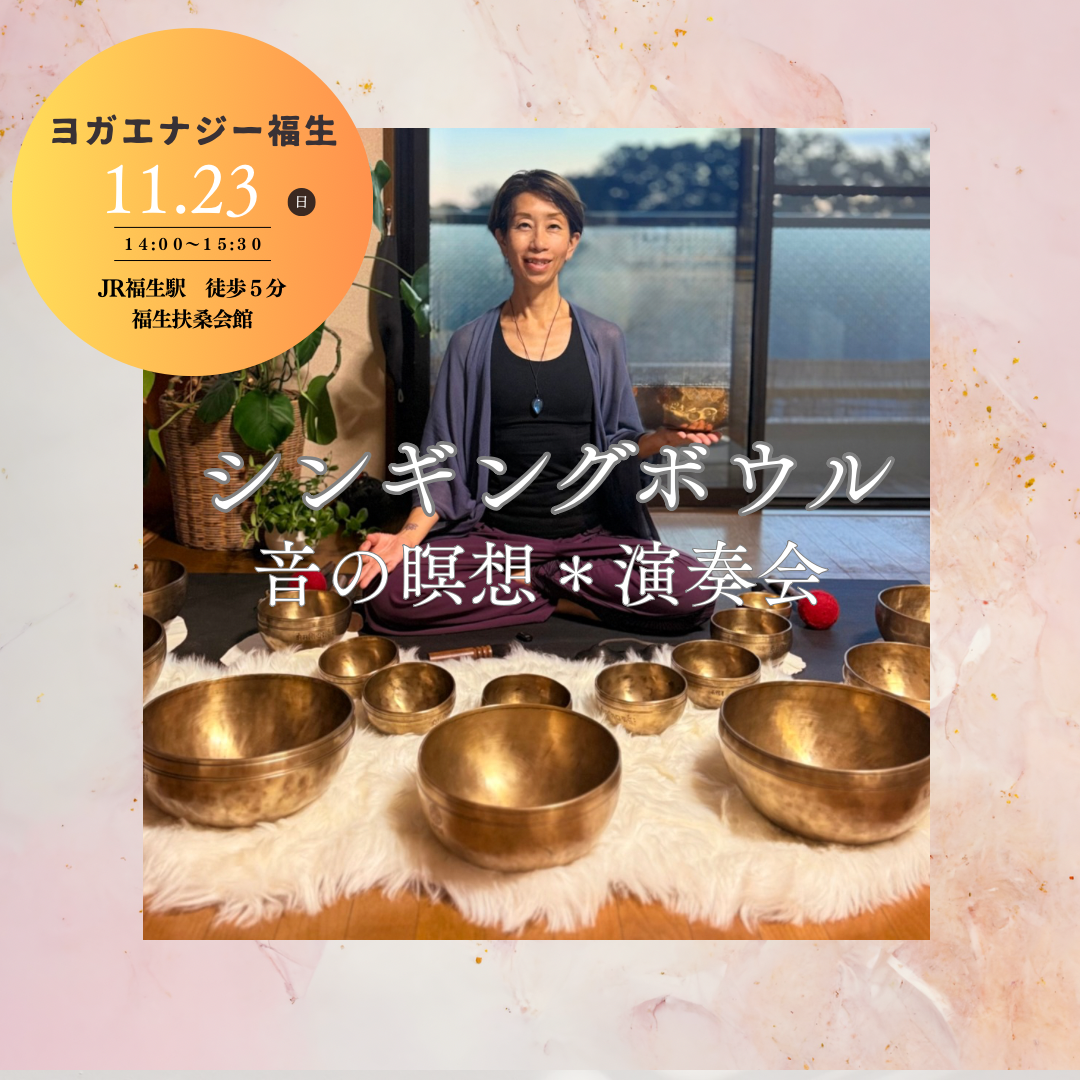 | 実施内容 | : | *シンギングボウル*音の瞑想会* いつもヨガの終わり皆さんを癒し シンギングボウルは 仰向けで寝ながら、心地よい倍音を聴聴きながらの瞑想。 ◎疲れが取れない方、 シンギングボウルの倍音は、重なり合う周波数の波。 シンギングボウルの音の波。響きを贅沢に味わえる ヨガエナジーのシンギングボウルは |