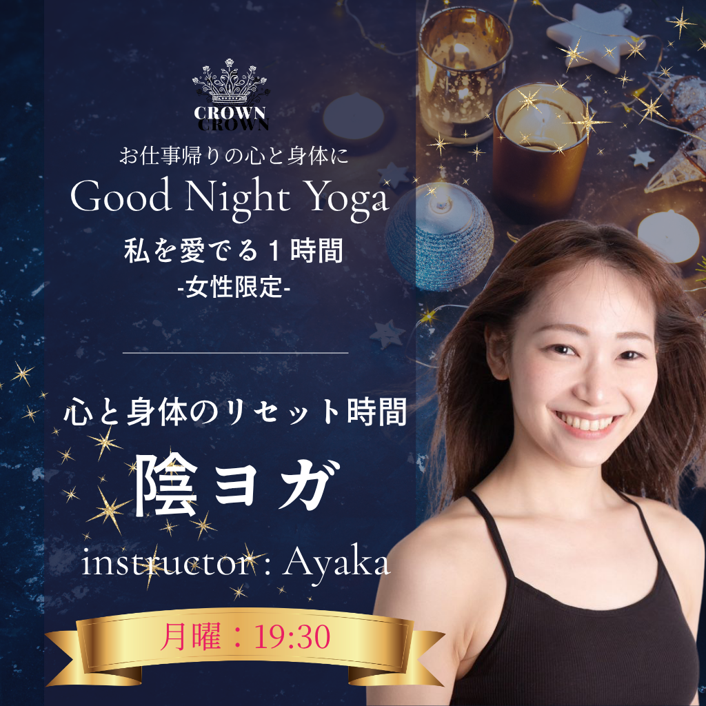 | イベント名 | : | 【原宿】お仕事帰りの癒しの夜ヨガ|Good Night Yoga by CROWN 【女性限定】 |