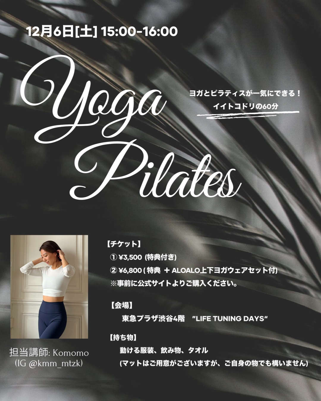| イベント名 | : | Yoga&Pilates - イイトコドリの60分 - |