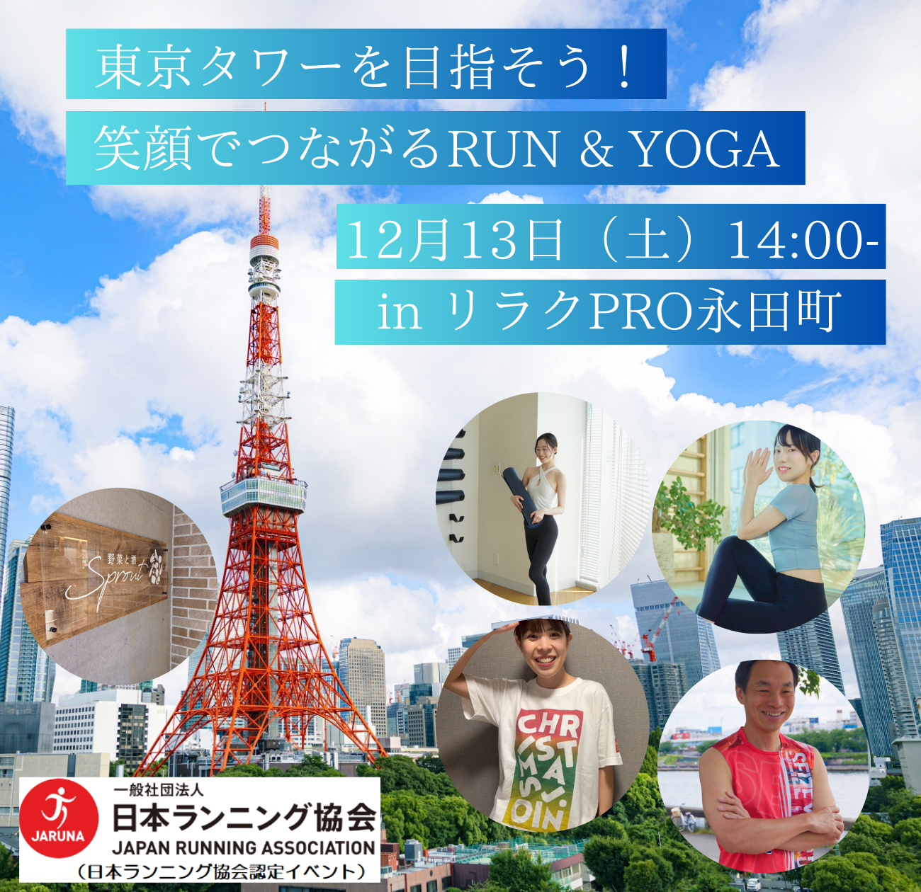 | イベント名 | : | 東京タワーを目指そう!笑顔でつながるRUN & YOGA in リラクPRO永田町 |