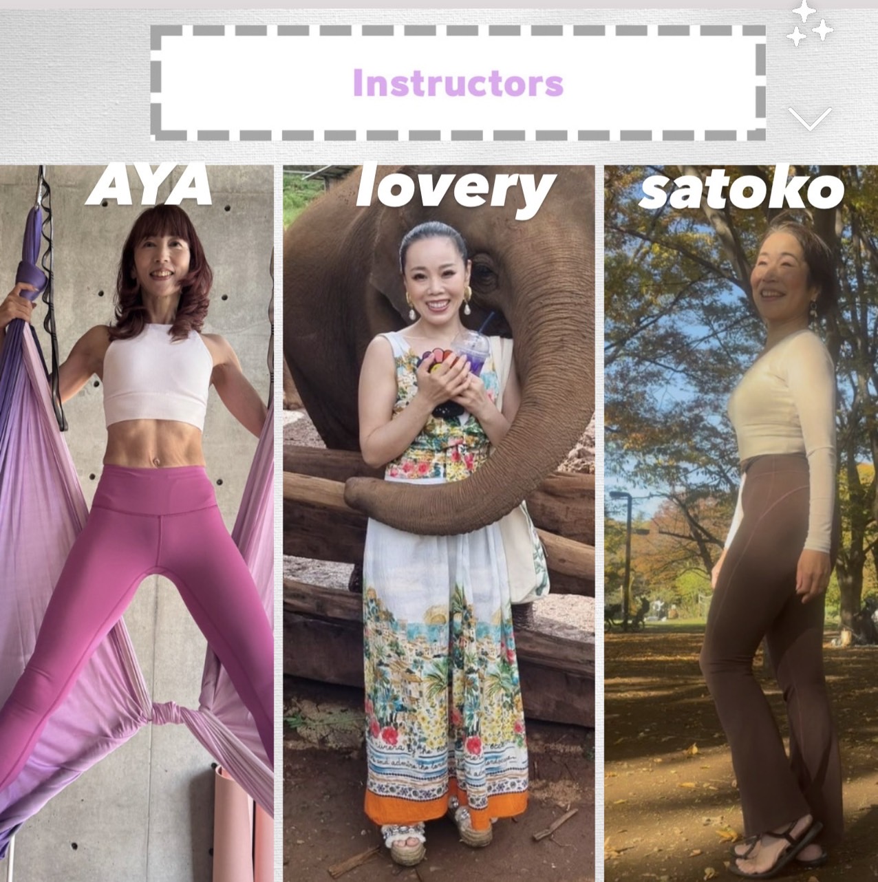 AYA& 𝐿𝑂𝑉𝐸𝐿𝑌&Satoko インストラクタープロフィール AYA★ayaya_yoga0726★ 𝐿𝑂𝑉𝐸𝐿𝑌 ★@raburitoburari★ Satoko★(@555satoko)★ |