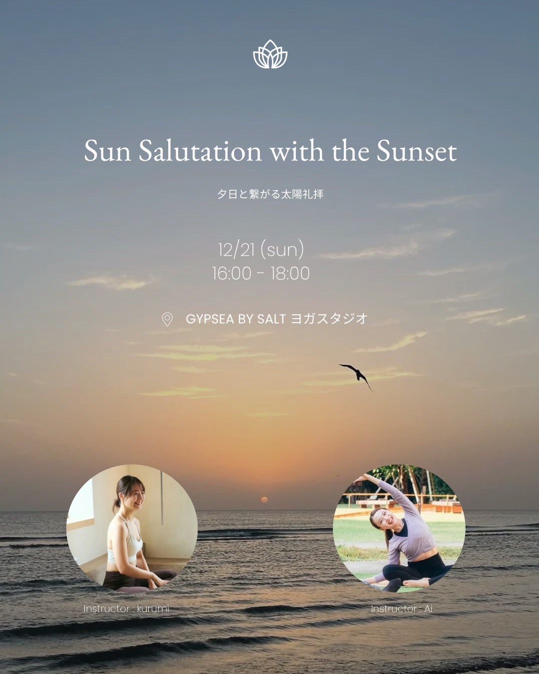 | イベント名 | : | Sun salutation with the sunset ~夕日と繋がる太陽礼拝~ |