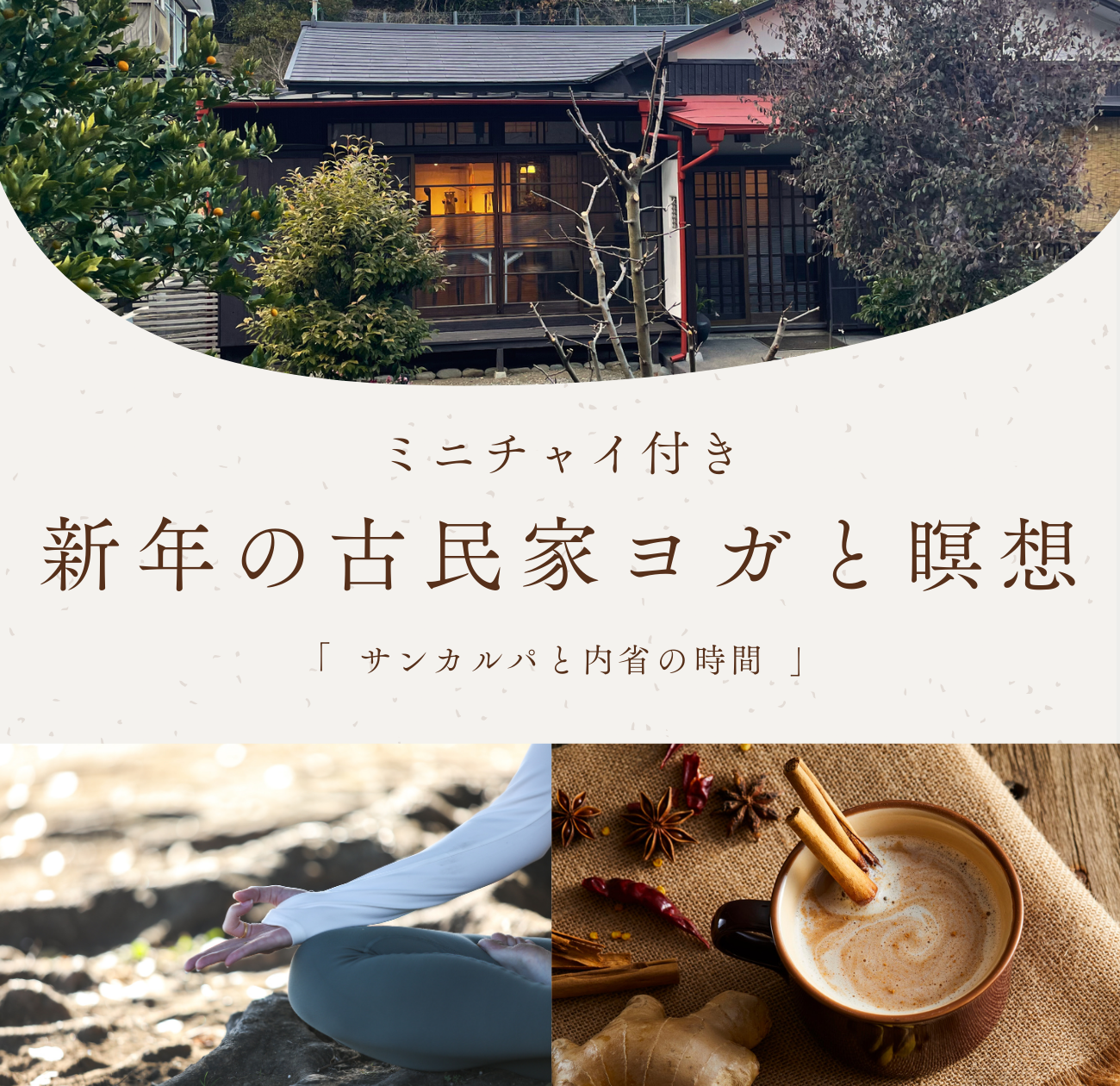 | イベント名 | : | 新年の古民家ヨガと瞑想 〜サンカルパと内省の時間〜 |