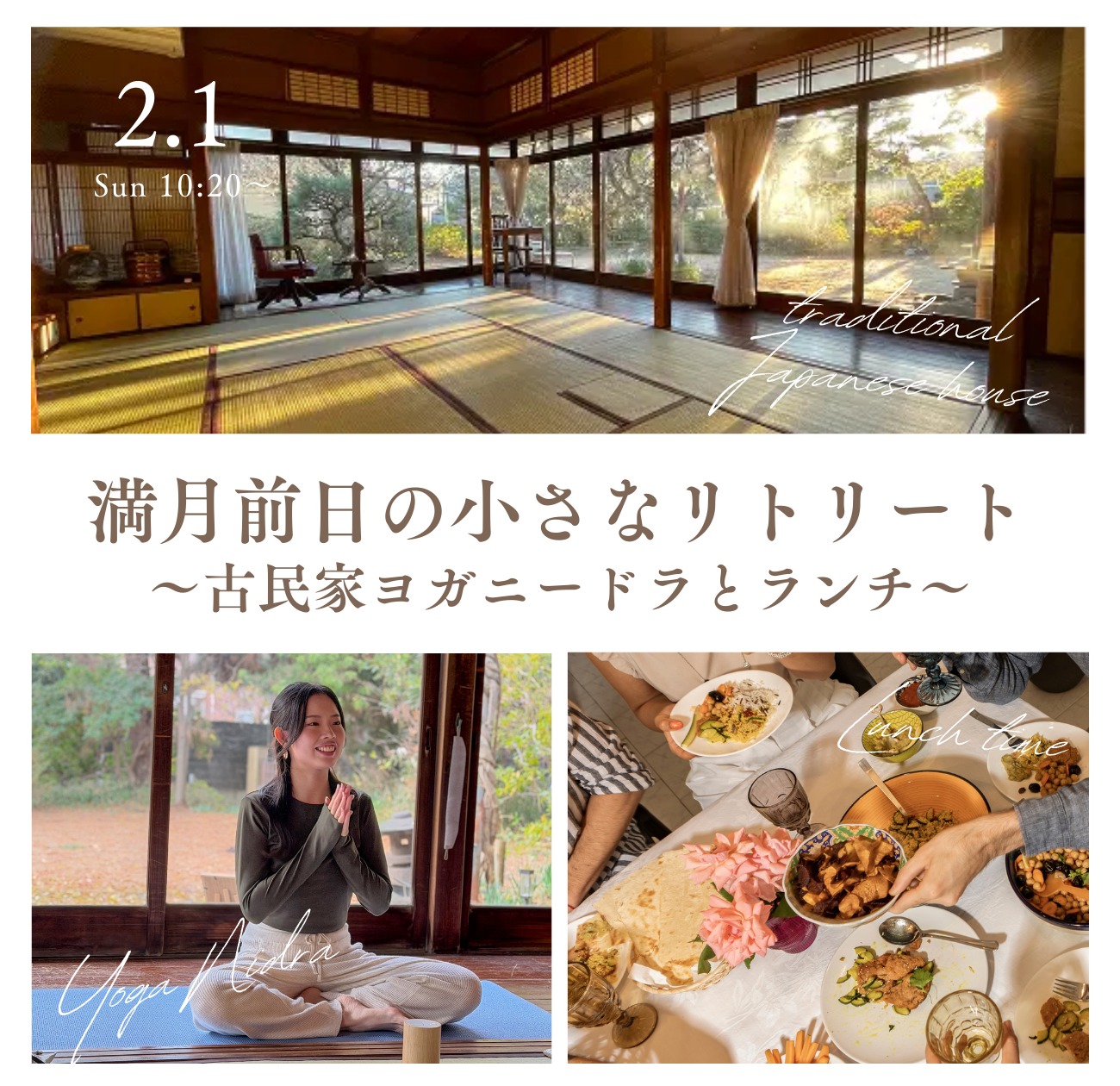 | イベント名 | : | 満月前日の小さなリトリート 〜古民家ヨガニードラとランチ〜 |