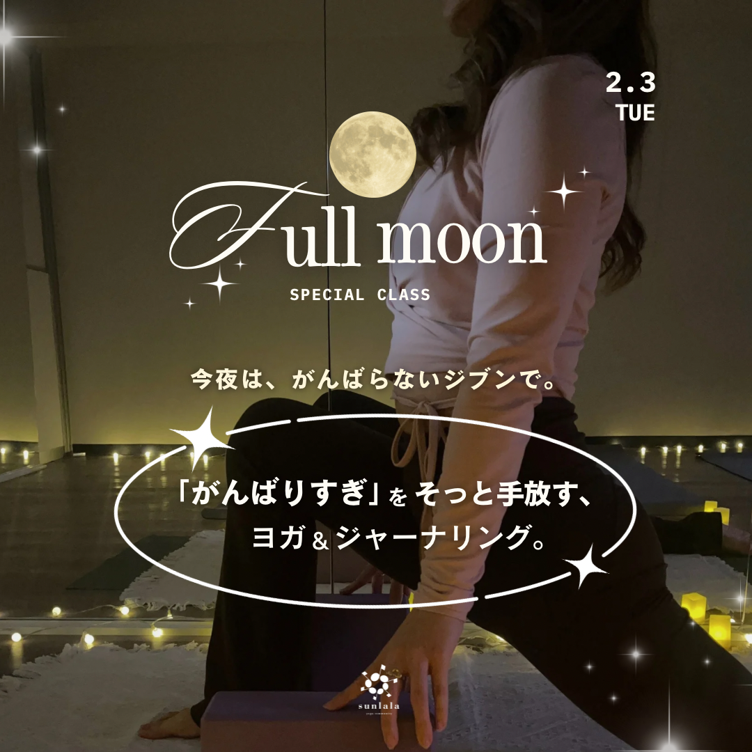 | イベント名 | : | Full Moon Class 「がんばりすぎ」をそっと手放す ヨガ&ジャーナリング |
