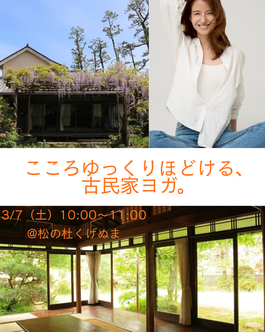 春の光を感じはじめる3月の週末に、古民家という、どこか懐かしくてあたたかな空間で、ゆっくりと呼吸を深め、こころと体をゆるゆるほどいてみませんか♪