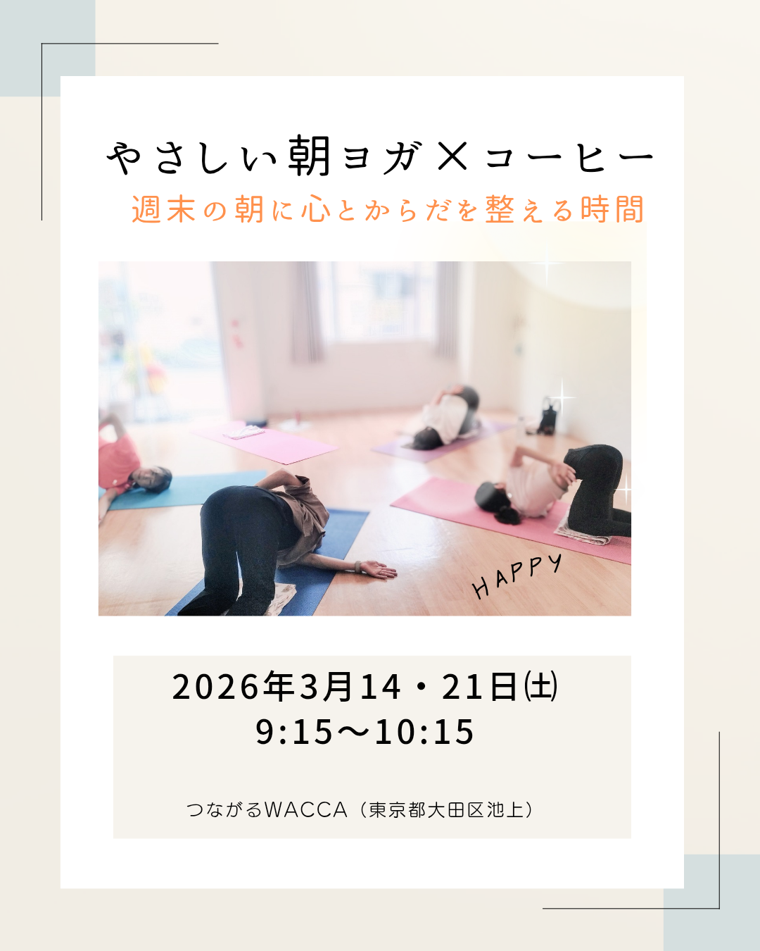 | イベント名 | : | やさしい朝ヨガ×コーヒー |