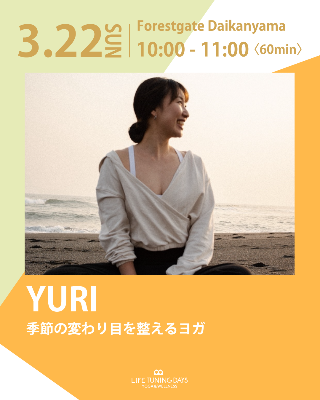 | 実施内容 | : | 【季節の変わり目を整えるヨガ】 会場:Roots Fitness DAIKANYAMA |