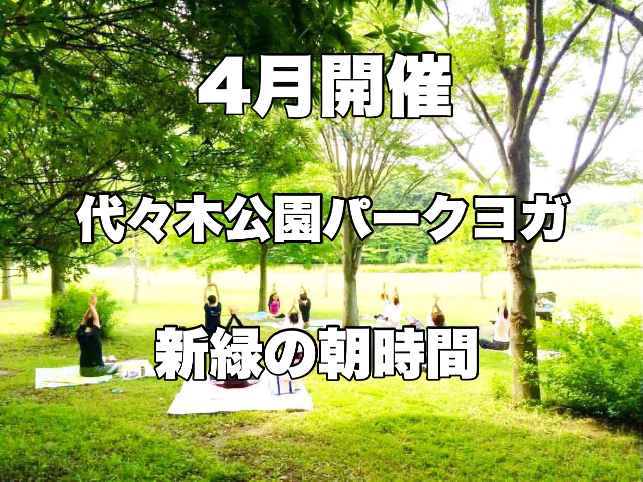 | 実施内容 | : | 【4月代々木公園パークヨガ】 新緑の中で、心と体をゆるめる朝ヨガ。 やわらかな風と光を感じながら、 肩・背中・股関節を中心にやさしくほぐし、 深い呼吸と心地よいフローで自律神経を整え、 自然の中で過ごす朝の時間は、 初心者の方や体が硬い方も大歓迎です! 気持ちのいい春の朝を、一緒に楽しみましょう! |