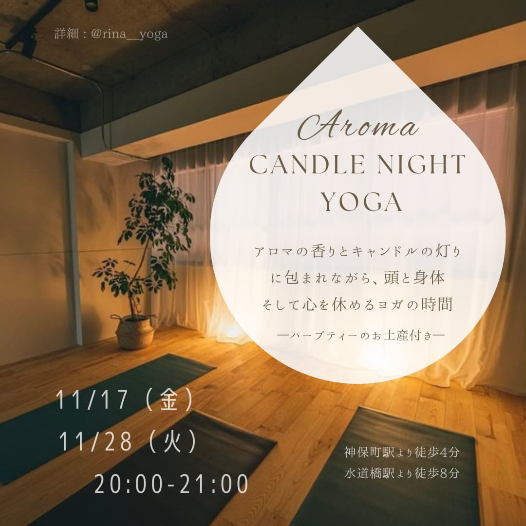 | イベント名 | : | Aroma × Candle night yoga -ハーブティーのお土産付き- |
