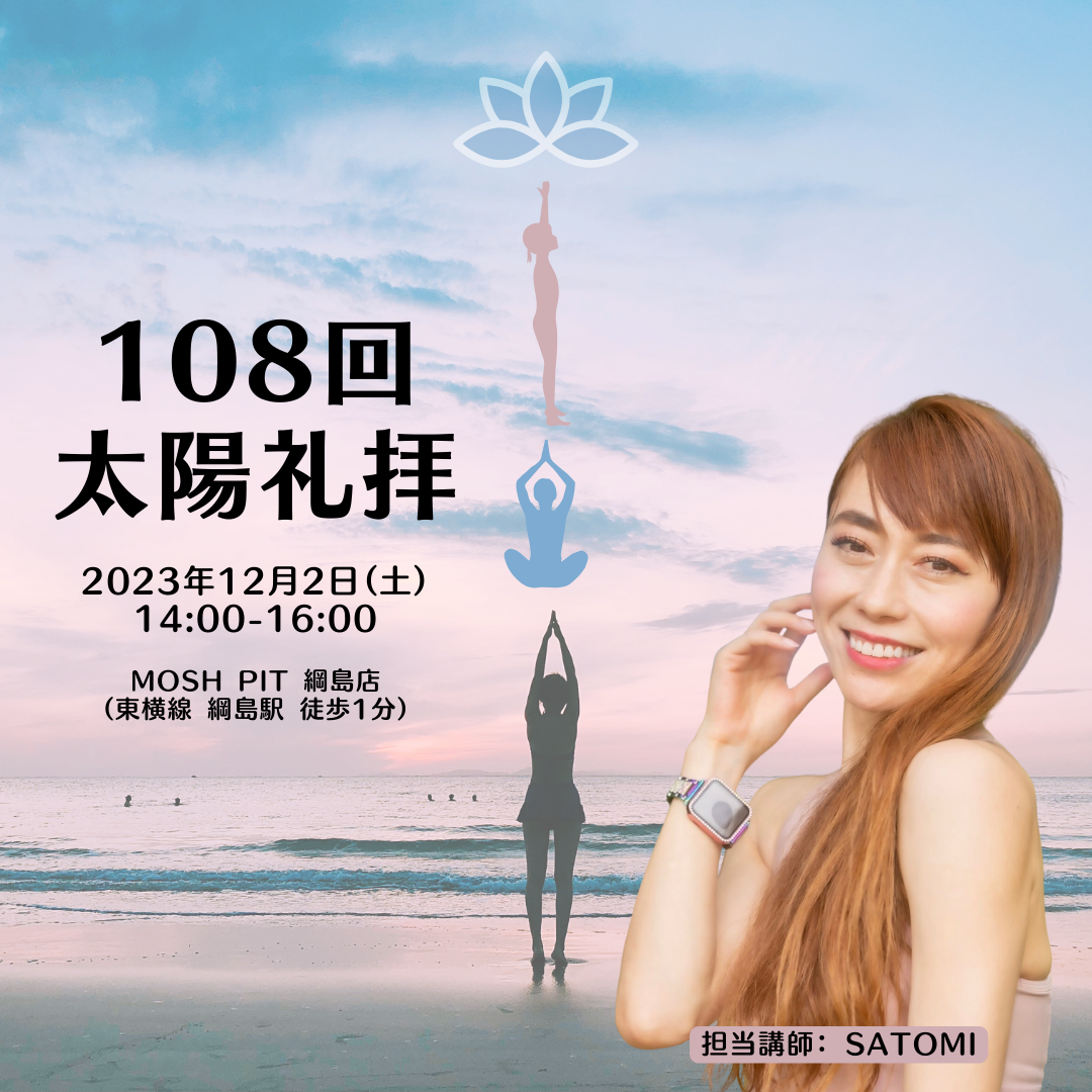 | 実施内容 | : | 毎年恒例のイベント太陽礼拝108回 太陽礼拝はいつも行っておりますが ご存知の通り 太陽は全ての生き物に光とエネルギーを与え 神に敬意を捧げる為の礼拝は太陽礼拝である。 大勢の方と一緒に唱え、礼拝することで 今年の良くない物を洗い流し 人間は生まれてから数えきれないほどの苦悩があります。 今年はそんなに悩みはなかったよと思う方は |