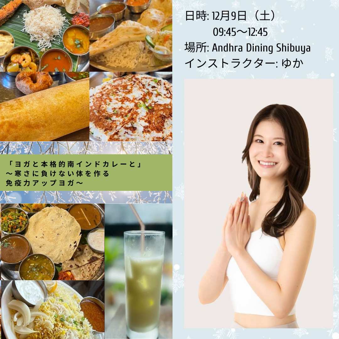 | イベント名 | : | 「ヨガと本格的南インドカレーと」~寒さに負けない体を作る免疫力アップヨガ〜 |
