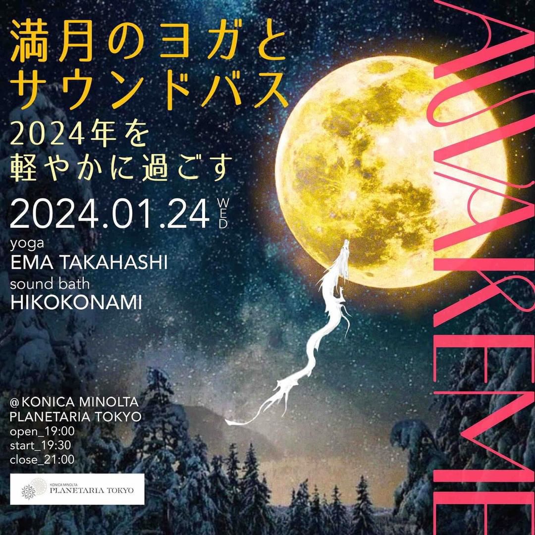 | 実施内容 | : | コニカミノルタプラネタリアTOKYOにて2024年初のAWAKEMEを開催!ヨガ、サウンドバスで2024年を軽やかにスタート! ヨガ、瞑想、音楽&ダンスで心と身体を整え解放するウェルネスパーティ、「AWAKEME」の2024年初の開催が1月24日に決定! コニカミノルタプラネタリアTOKYOとの共催でお届けしている本イベント。2024年一発目のテーマは、「SURRENDER(サレンダー)」。サレンダーとは日本語で“手放す“や”委ねる“という意味です。 この日、ヨガを担当いただくのは、月の満ち欠けに合せた生活で心と体を整える「癒しの月ヨガ®︎」を伝えている高橋エマさん。サウンドバスはNYで音楽療法 / サウンドヒーリングを学び多方面で活躍するHIKOKONAMIさんです。 満月の日はこれまでの自分を見直して、古い思考パターン、いらなくなったネガティブな感情、悪い習慣を手放すチャンス。満天の星の下、不要なものを手放し、自分を信頼して宇宙の流れに身を委ねて、2024年を軽やかに過ごしましょう! 本イベントは、AWAKEME限定ドリンク「スターリーボトル デトックスウォーター」がセットになっています。宇宙で出会った鮮やかな惑星たちを詰め込んだスターリーボトルで、手の中に広がる小さな宇宙を楽しんで。プラネタリアTOKYO内にあるカフェ「Cafe Planetaria」の特別メニューで素敵な夜を。 |