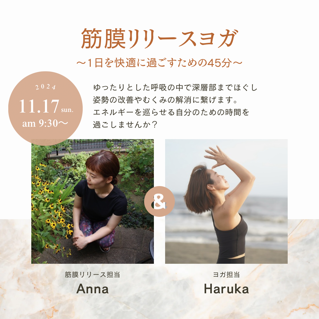 | イベント名 | : | 筋膜リリースヨガ 〜1日を快適に過ごすための45分〜 |