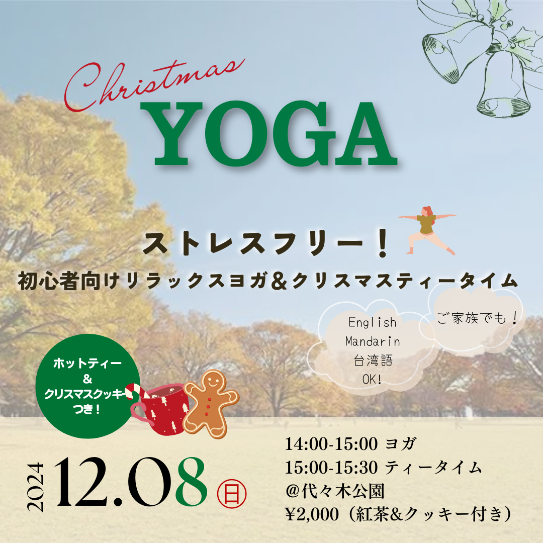 | イベント名 | : | ストレスフリー!初心者向けリラックスヨガ&クリスマスティータイム |