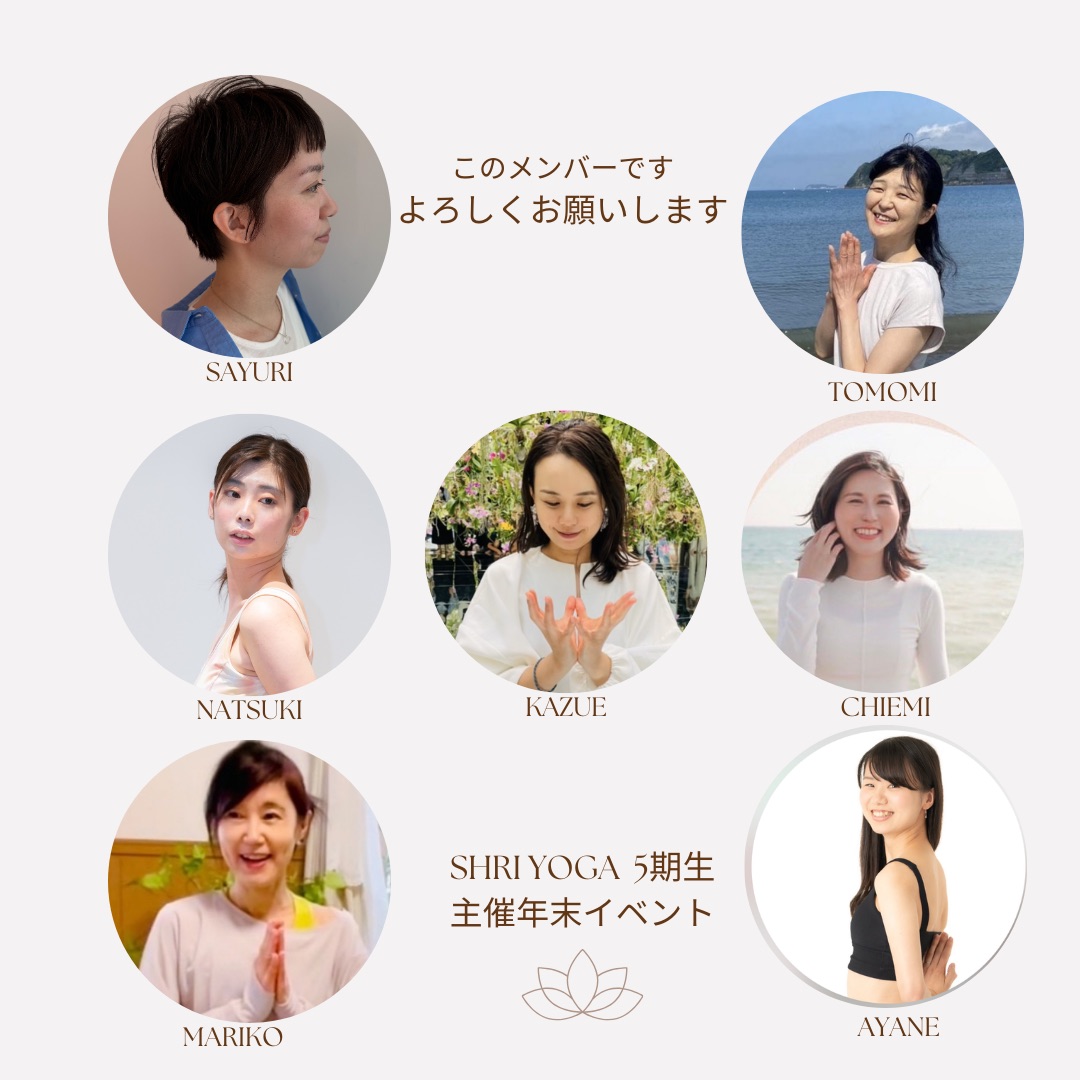 Sayuri, Kazue, Mariko, Tomomi, Natsuki, Chiemi RYT資格取得専門ヨガスクールのSHRI Yoga schoolを卒業した、同期のヨガインストラクターのメンバーです。 |