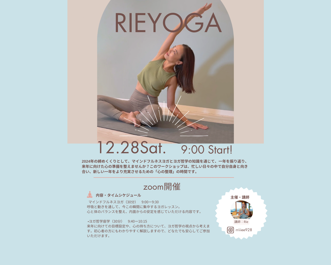 | イベント名 | : | 2024年を締めくくるマインドフルネスヨガとヨガ哲学WS |