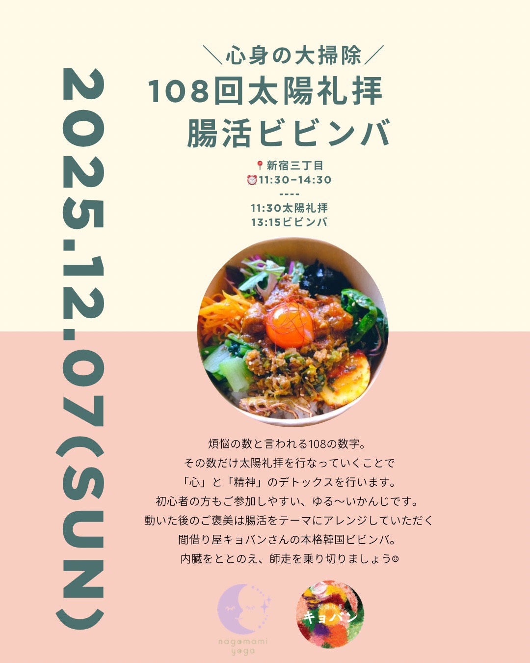| イベント名 | : | 108回太陽礼拝×腸活ビビンバ |